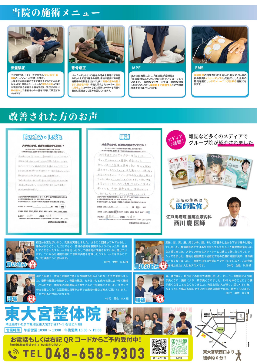 A. 当院ではボキボキ、バキバキせず、痛みの出ない特殊な矯正を行っておりますので、ご安心ください。